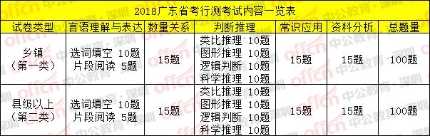 广东公务员考试行测考试时间只有90分钟,考试时间:8:00-9:30,比其他省份短半小时。行测试卷根据职位分乡镇考卷(第一类)和县级以上考卷(第二类)两类。虽是两套试卷,题序不一样,但实际上内容是一致的