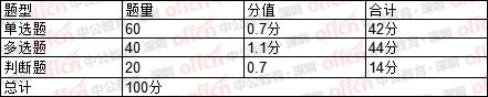 《行政执法素质测试》为客观性试题,题型包括单项选择题、多项选择题、是非题,考试时限120分钟,满分100分。